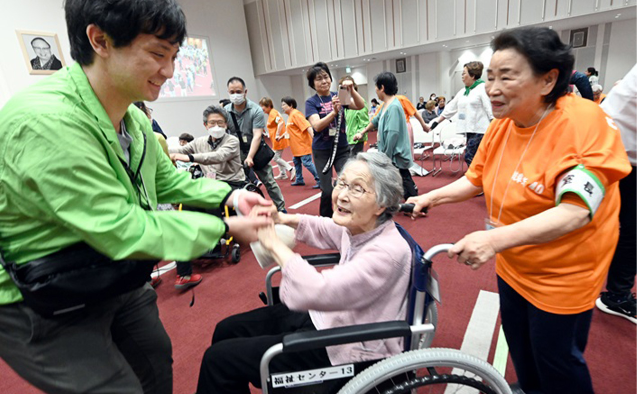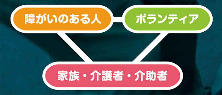 障がいのある人、その家族・介護者・介助者、ボランティアの「三者」が、お互いを尊重し、支え合いながら、一緒に幸せな人生を歩んでいく。すべての人が生まれてきてよかったと思える社会を目指そうと昭和52 年(1977)に発足した「三者の会」。弥勒山「三者のつどい」も、その理念をギュッとつめ込んで、三者が一体となってつくりあげている。