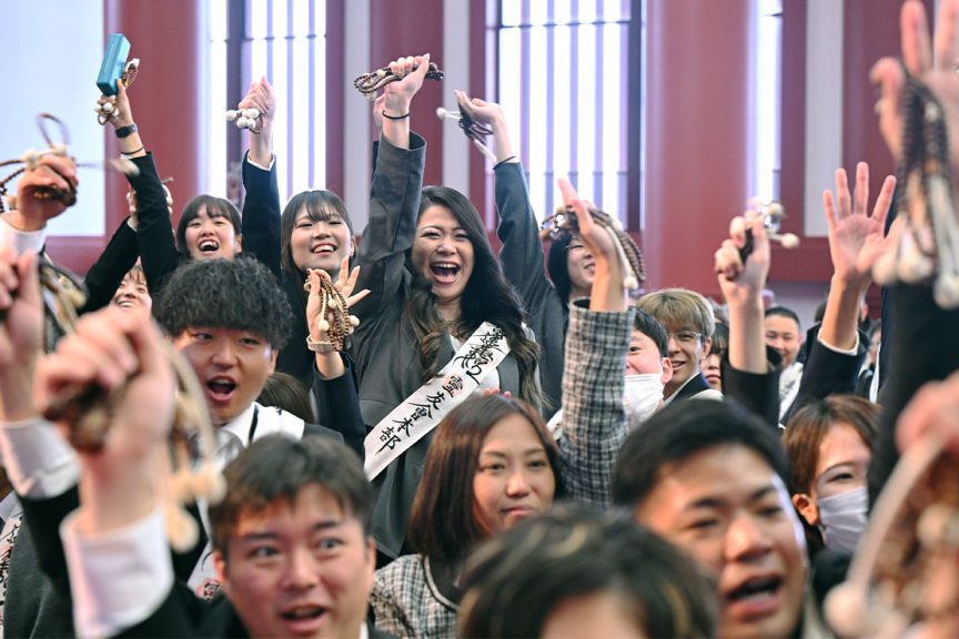 「つどい」で自分を振り返り、自分を変えようと努力する。その積み重ねが、たしかな自信に変わる。「青年部弥勒山大祭」では、驚くべきことに、大勢の人の前で手を挙げ、自分が変われた実感を堂々と発表する岡根さんの姿があった。